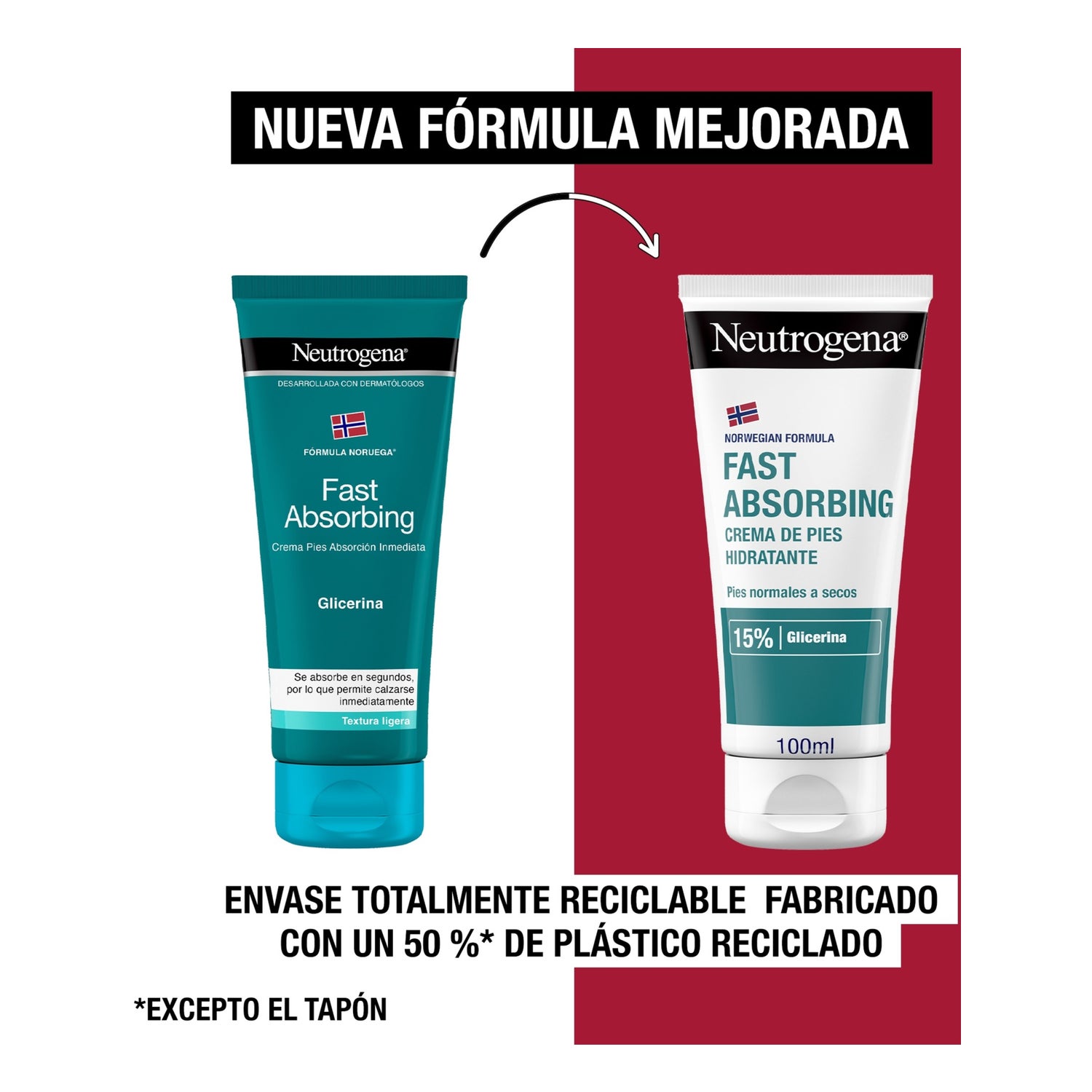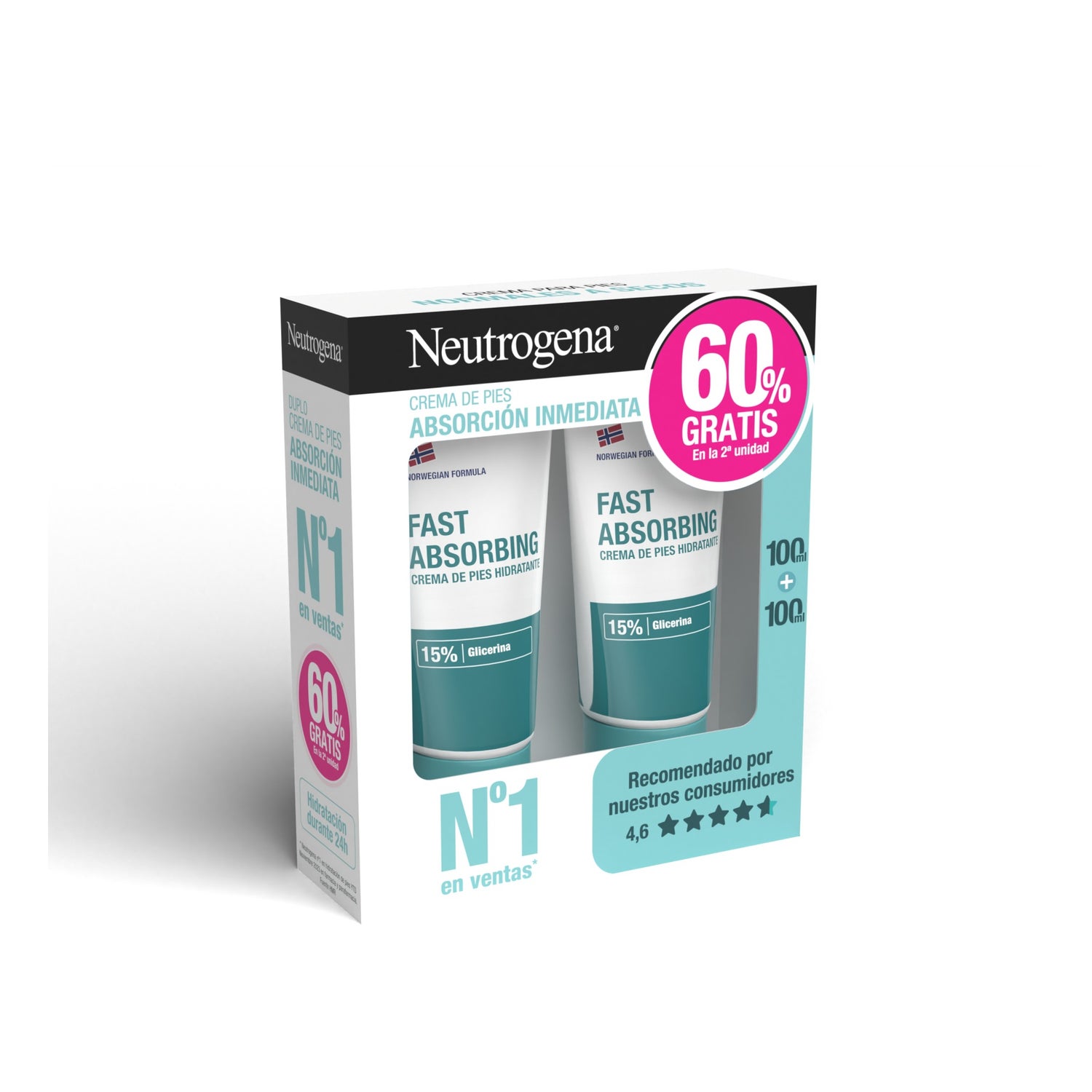 Neutrogena® Immediate Absorption Foot Cream Light Texture 2x100ml is a cream that allows hydration of dry feet for up to 24h.