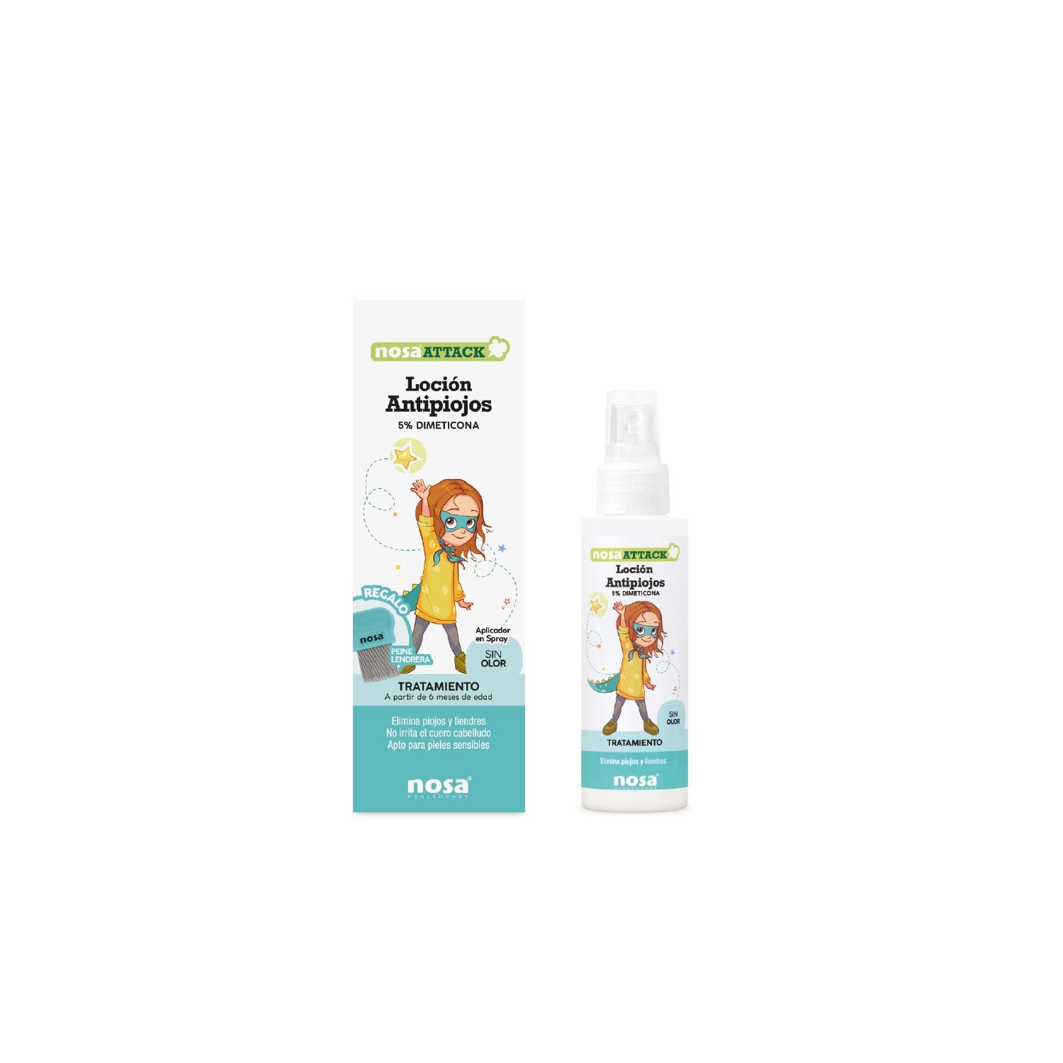 Nosa Attack Lice Lotion 5% Dimethicone Fragrance-Free 100ml is a lice lotion that contains dimethicone and has soothing and lubricating properties that facilitate combing and the removal of lice and nits by dragging.