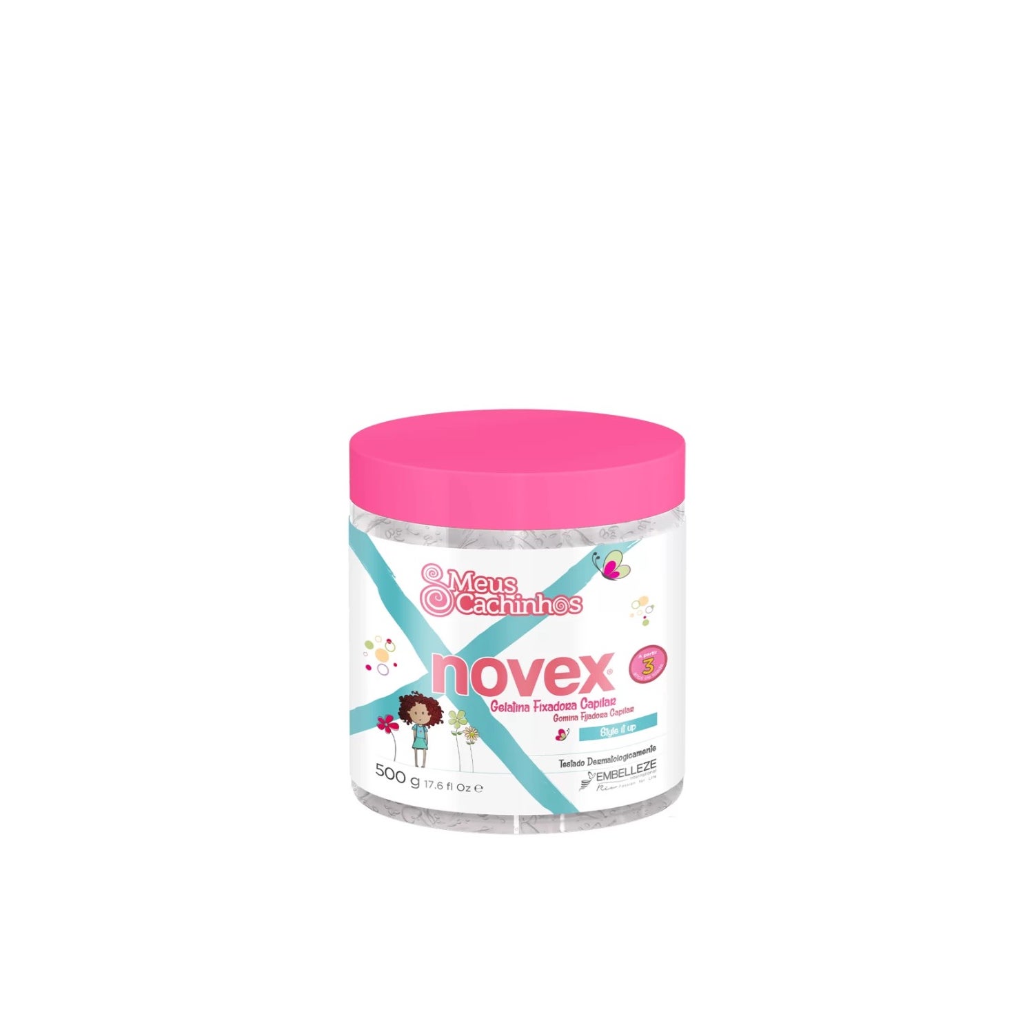 Novex Meus Cachinhos Fixative Gel 500g is a product designed to define and shape hair curls. Its formula is enriched with Aloe Vera and Pantheon, ingredients known for their beneficial properties.