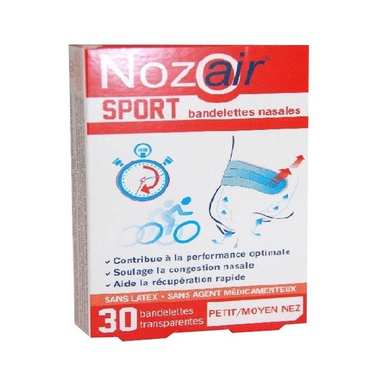 Nozoair Sport Bdenas Peti/Moy30 from TRADIPHAR is designed to optimize breathing during sports activities, facilitating the passage of air through the nostrils. Its innovative system improves nasal ventilation, essential for achieving optimal performance in demanding physical activities.