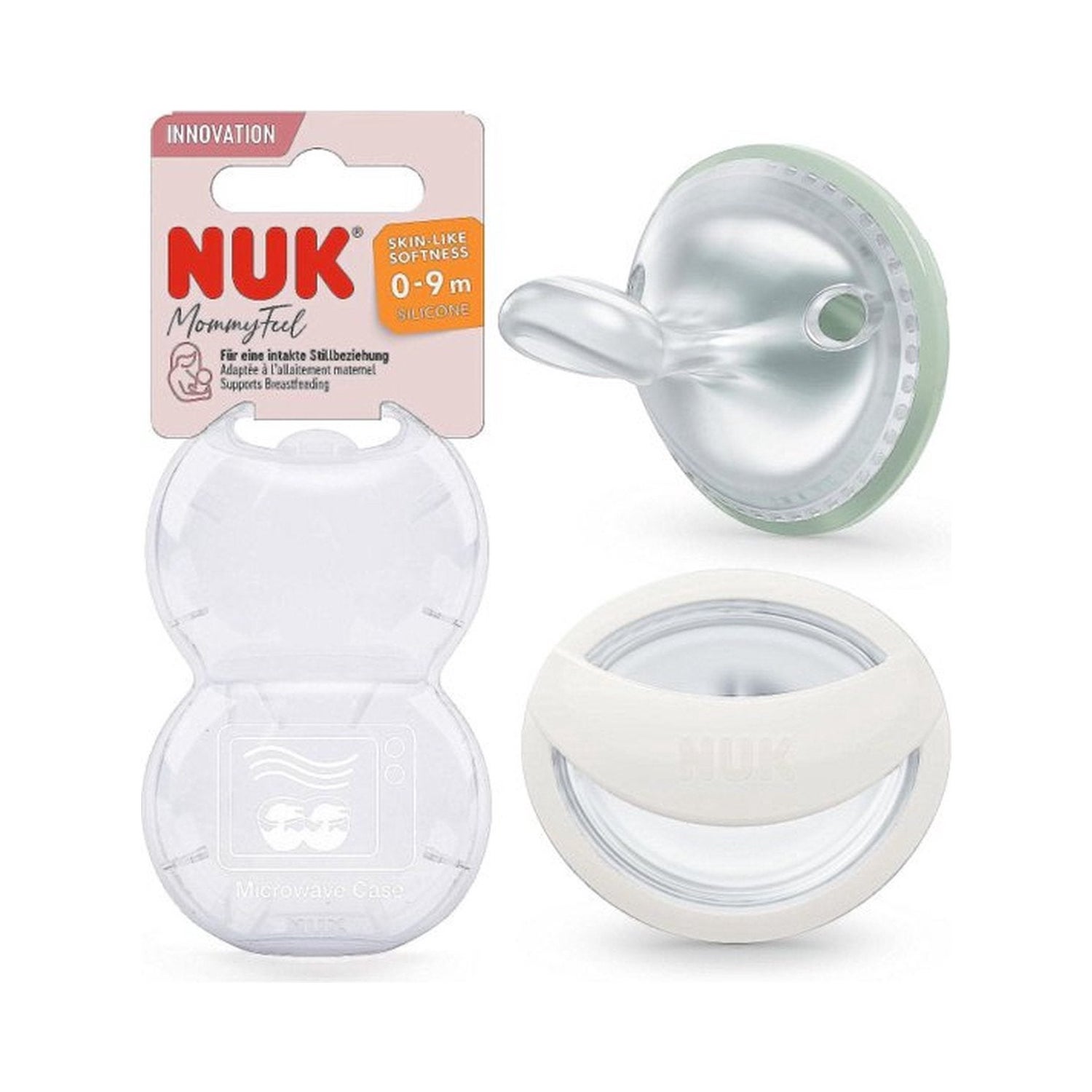 Nuk Mommy Feel Pacifier 0-9M Green is designed to provide your baby with a feeling close to breastfeeding and satisfy their natural need to suck, without disrupting breastfeeding.