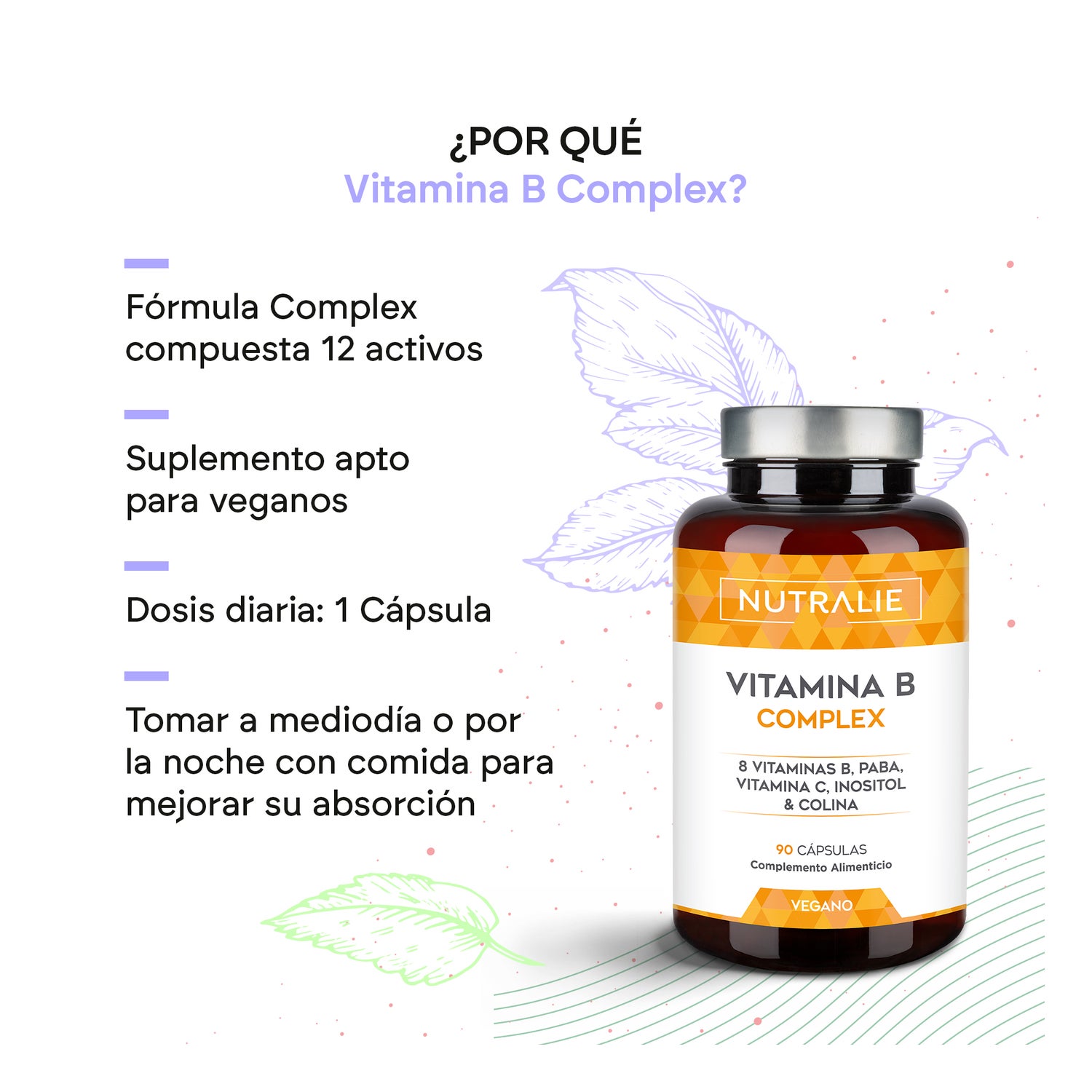 Nutralie Vitamin B Complex with Vitamin C + Choline + Inositol + PABA 90caps is a dietary supplement that helps strengthen natural defenses, improve energy metabolism, and counteract tiredness and fatigue.