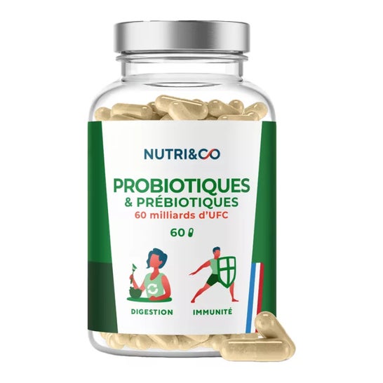 Nutri&Co Probiotics and Prebiotics 60caps is a food supplement that helps promote good digestion to avoid associated discomfort such as gas and heartburn.