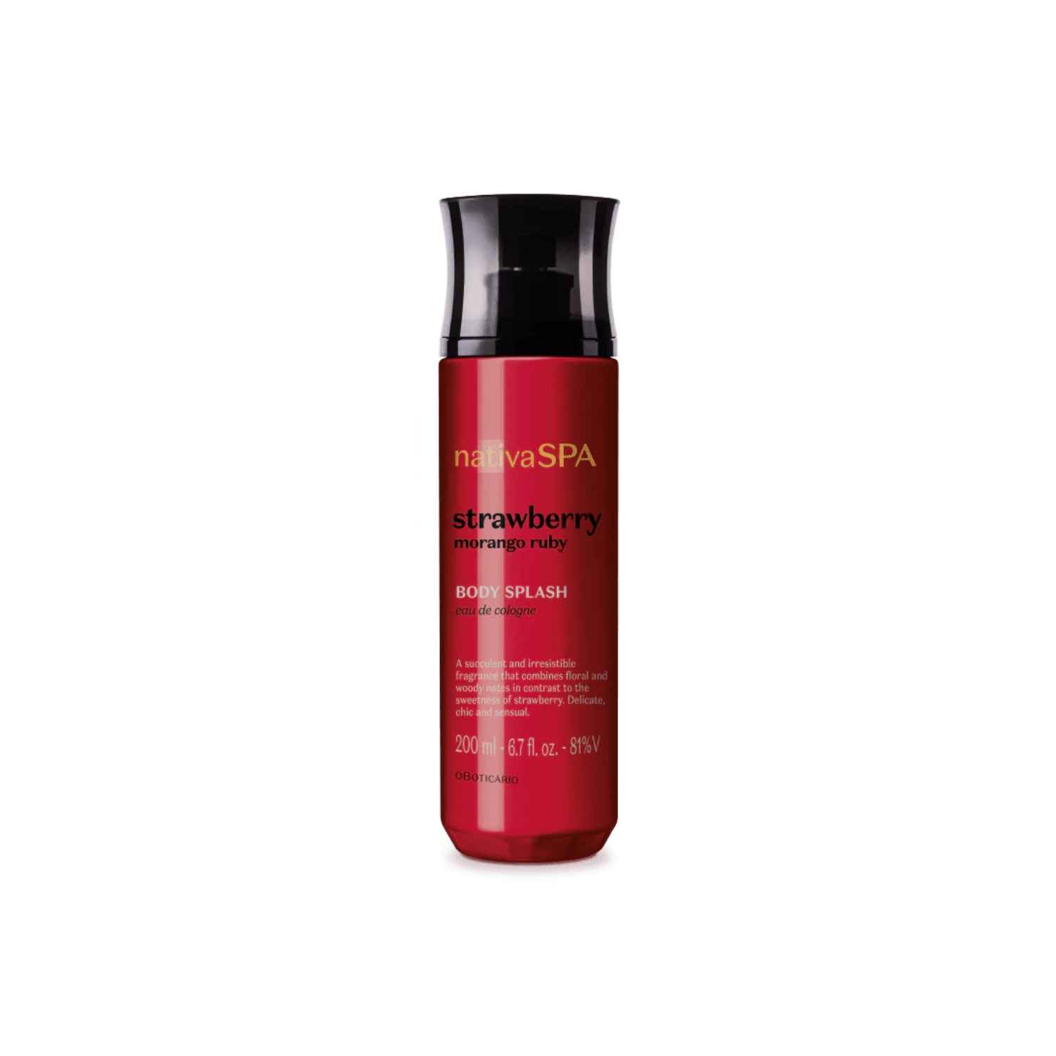 O Boticário Nativa SPA Ruby Strawberry Body Splash 200ml is ideal for those who want to care for and perfume their skin with daily freshness. Its formula is designed for skin wellness, providing long-lasting hydration and an enveloping fragrance.