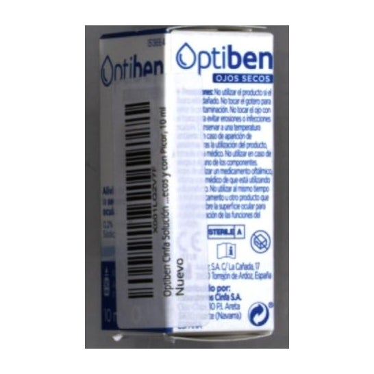 Optibén eye drops 10ml are ophthalmological drops with moisturising and protective properties. Sodium hyaluronate relieves irritation, dryness and foreign body sensation caused by environmental elements such as wind, sun, dry air, salt water, smoke, excessive light, air conditioning, heating, long hours working on a computer, eye surgery, conjunctivitis or contact lens use.