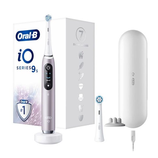 Oral-B Io Series 9S Pink Set Toothbrush is an innovative rechargeable toothbrush that stands out for its advanced technology. This model features iO magnetic technology, which provides a superior cleaning experience. Its round brush design incorporates gentle micro-vibrations, creating a pleasant feeling of freshness in the mouth.