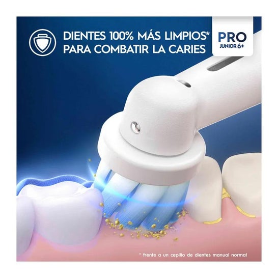 The Oral-B Junior electric toothbrush from Frozen for children over 6 years old has been designed with dentists to achieve superior cleaning. It features a 360º pressure control on the gums that: