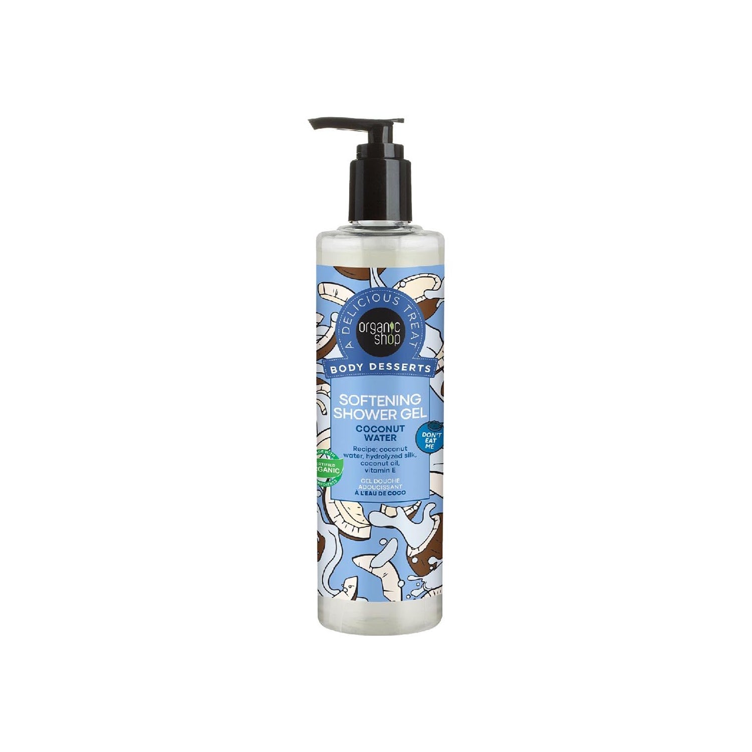 Organic Shop Body Desserts Softening Shower Gel is a shower gel that provides deep hydration to the skin. Its formulation includes coconut water, known for its moisturizing properties, which helps keep the skin soft and hydrated.