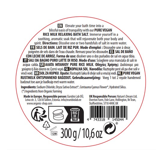 Organic Shop Sal de Baño Relajante Leche de Arroz Vegana 300g