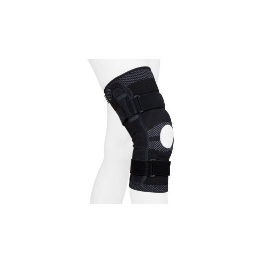 INFORMATIONThanks to its breathable and ventilated fabric, it is particularly pleasant against the skin, even when worn for long periods. - Removable straps (upper and lower) to optimize joint compartmentalization. - Viscoelastic padding for better patellar control. - Supplied with 2 lateral reinforcement systems depending on the required support: a double spiral spring that reproduces the natural movement of the knee and an articulated polycentric sphere that limits joint amplitude. - Dual density 3D knitted fabric provides superior elasticity in the movement zones (patella, popliteal hollow, thigh/calf). - Thinner silicone insert in the distal region to free the patellar tendon.INDICATION