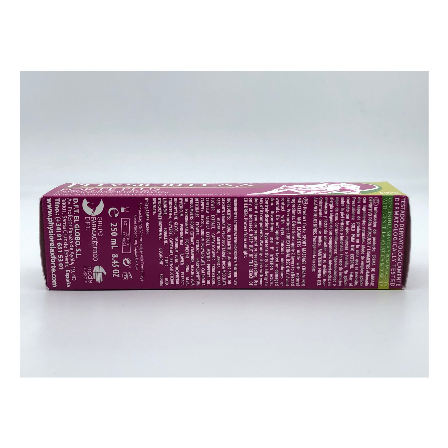 Physiorelax® Forte 250ml is a massage cream that will help you to loosen and relax your muscles after very demanding physical exercise. Thanks to its formulation rich in thermal water and rosehip, this cream will provide mineral salts and emollient and moisturizing properties to the skin.