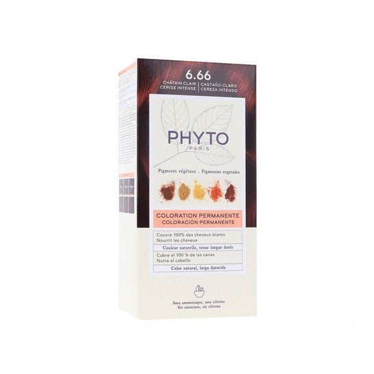 Phyto Phytocolor Kit Coloración 6.66 Light Cherry Brown is an advanced solution for those who want to achieve a natural and luminous hair color. This kit is formulated with selected plant pigments, derived from five dyeing plants, ensuring vibrant highlights and an intense color result.