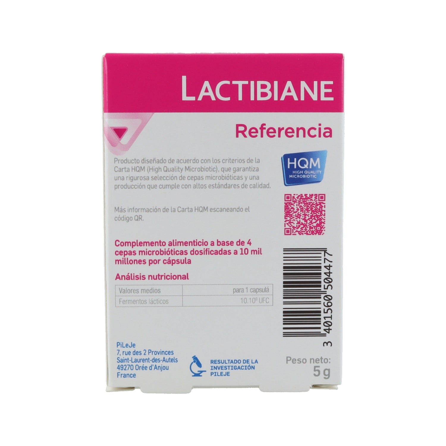 Lactibiane Référence capsules contain 10 billion probiotics per capsule.INFORMATIONLactibiane Référence food supplement is a blend of probiotics that help maintain a balanced intestinal flora. It will become your ally to overcome intestinal problems (bloating, discomfort). It is also used to regulate the transit from the 1st week.INDICATION