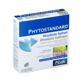 Pileje Phytostandard Rhodiola Saffron 30 Tablets is a food supplement that helps the body to adapt to emotional stress and improve mood.Formulated with rhodiola root (Rhodiola rosea L.) and saffron stigmas (Crocus sativus L.), this food supplement naturally helps the body to adapt to emotional overload thanks to phytonutrition.Not recommended for pregnant or breastfeeding women, people with bipolar disorder or children.Not recommended for people taking antidepressants.Food supplements should never replace a healthy, varied and balanced diet and balanced and bipolar disorder and children.Not recommended for people taking antidepressants. Not recommended for pregnant or breastfeeding women, people with bipolar disorder or children.not recommended for people taking antidepressants.food supplements should never replace a healthy, varied and balanced diet and a healthy lifestyle.