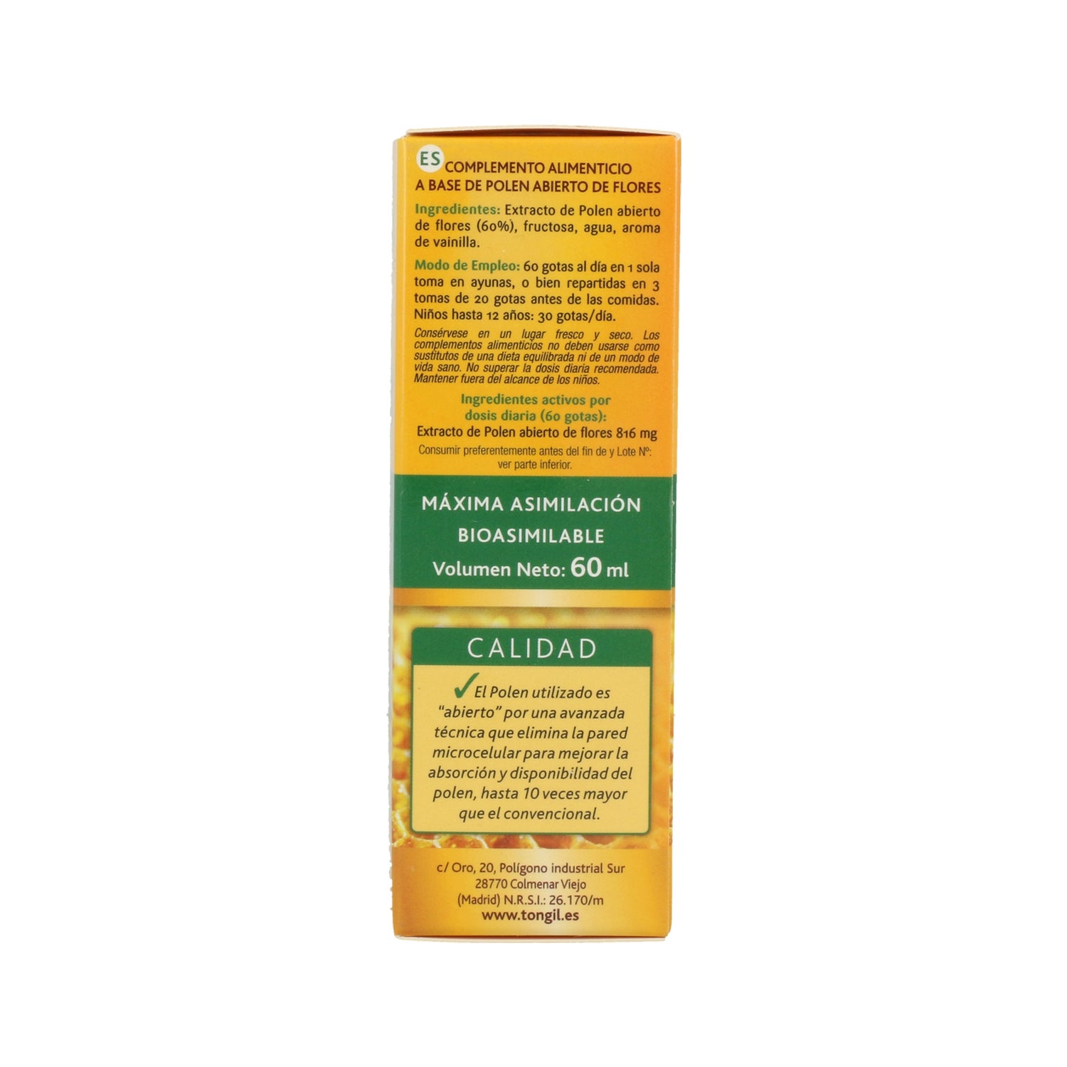 Pollen increases vigour, vitality and alertness. It helps to feel more energetic in case of fatigue. Stimulates immune response. Increases appetite. The pollen used is "opened" by an advanced technique that removes the microcellular wall to improve the absorption and availability of pollen, up to 10 times greater than conventional pollen. By removing the outer layer of the pollen, possible allergies related to the proteins in the outer wall of the pollen are eliminated.