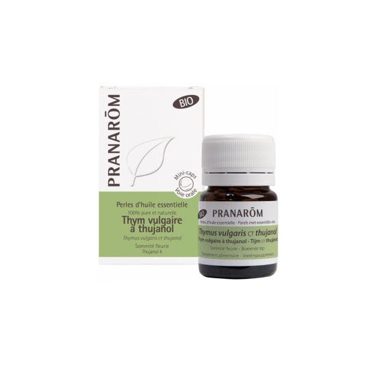 For the development of these essential oil pearls, the Pranarom Laboratory has developed a synergy with the vegetable oil of sunflower (Helianthus annuus) and the essential oil of thyme Thujanol. The latter comes from a distillation of its flower tips by steam distillation, giving way to an essence, pure, natural and full of active ingredients.