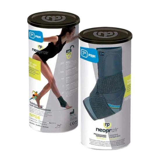 Prim Neoprene Ankle Support 8 with TS Stabiliser 1 unit is a neoprene ankle support designed to prevent and treat mild ankle sprains. It is made from a breathable material that is 3 mm thick, offering three-dimensional compression. Highlighted features: - It has a double elastic band for an eight-shaped wrap and 3 tibial closures. - Includes removable side plates. - Designed with an open heel for greater comfort. - Incorporates technology that facilitates breathability, preventing moisture and retaining heat. This ankle support is available in size S. It is ideal for maintaining stability and protecting your ankle during physical activity or recovery from mild injuries.