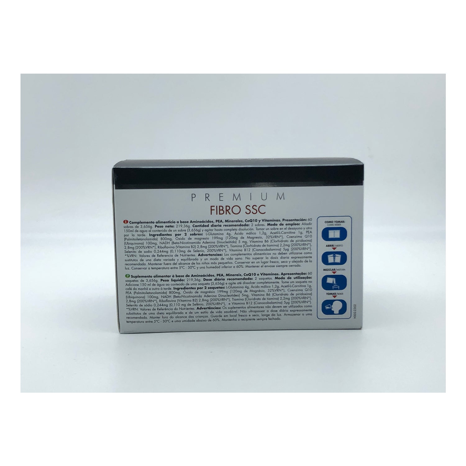 L-Glutamine 4g, Malic Acid 1,2g, Acetyl-L-Carnitine 1g, PEA (Palmitoylethanolamide) 800mg, Magnesium Oxide 199mg (120mg Magnesium, 32%VRN), Coenzyme Q10 (Ubiquinone) 100mg, NADH (Beta Nicotinamide Adenine Dinucleotide Dinucleotide) 5mg, Vitamin B6 (Pyridoxine Hydrochloride) 2,8mg (200%VRN), Riboflavin (Vitamin B2) 2,8mg (200%VRN)5mg, Vitamin B6 (Pyridoxine Hydrochloride) 2.8mg (200%RNV), Riboflavin (Vitamin B2) 2.8mg (200%RNV), Thiamine (Thiamine Hydrochloride) 2.2mg (200%RNV), Sodium Selenite 0.244mg (0.110mg of Selenium, 200%RNV), Vitamin B12 (Cyanocobalamin) 5μg (200%VRN).