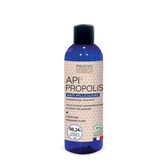Propos' Nature Api Propolis Anti-Dandruff Treatment Shampoo 200ml is an organic certified care product, formulated with 98% natural origin ingredients, specifically designed to eliminate dandruff and prevent its reappearance, all while respecting the balance of the scalp.