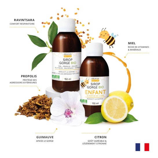 This syrup is designed to soothe and calm the throat. Enriched with organic pollen, it supports the body's natural defenses. Its sweet and pleasant taste and quick effectiveness make it an ideal ally during winter discomforts.