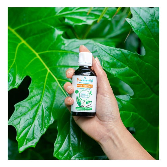 Pur essentiel Vanilla Vegetable Oil 50ml is an oily macerate of Organic Vanilla resulting from the maceration of Gourmet Black Vanilla pods from Madagascar in organic sesame oil, extracted by first cold pressing.