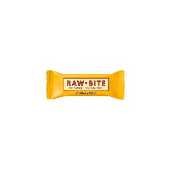 Organic energy bar from the brand Raw Bite with orange and cocoa flavor, which is an ideal snack after your workout routine.