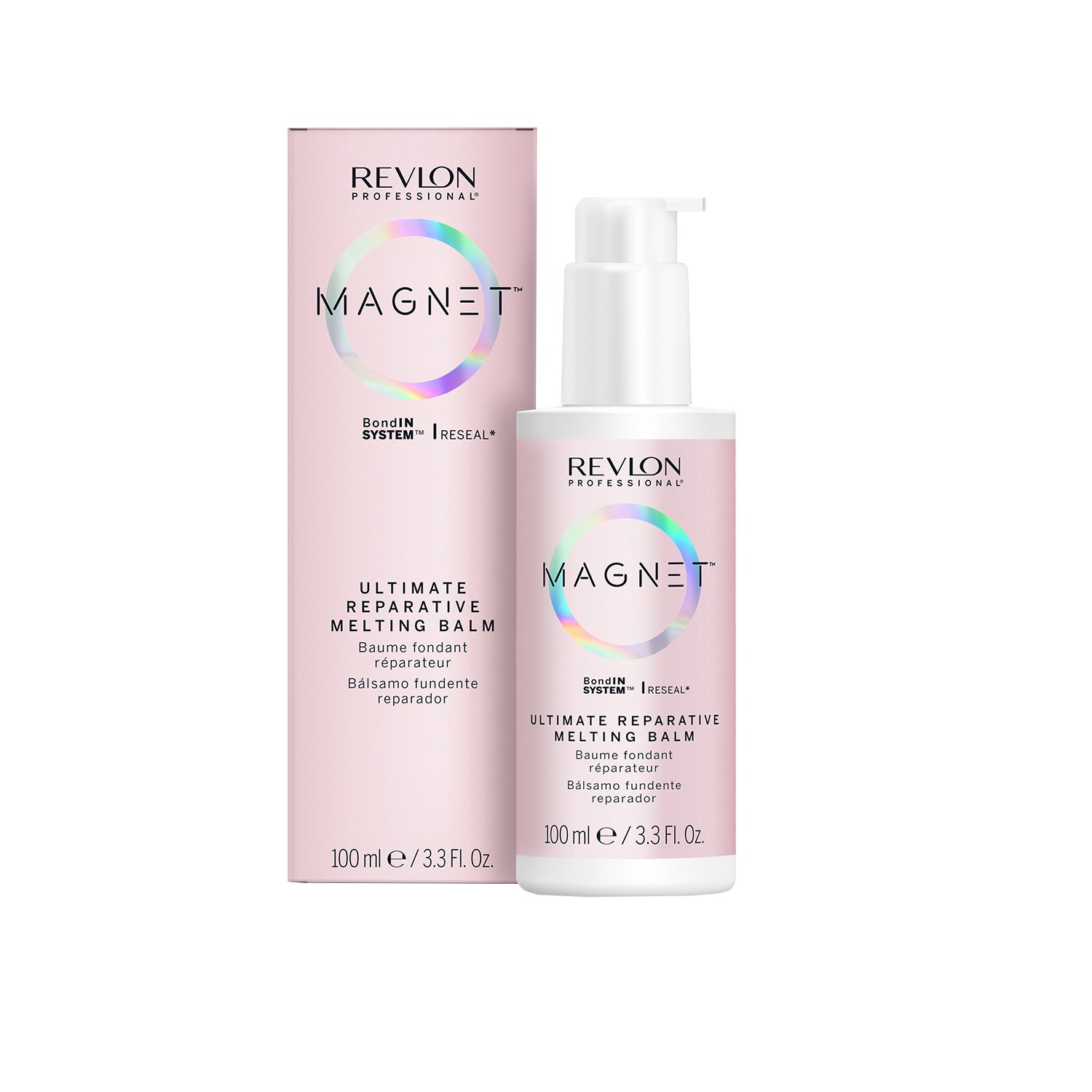 Revlon Magnet Ultimate Reparative Melting Balm 100ml is a repairing balm that helps to reconstitute the mid-lengths and ends of very damaged hair. It helps to seal the hair after colouring treatments, providing softness and texture.