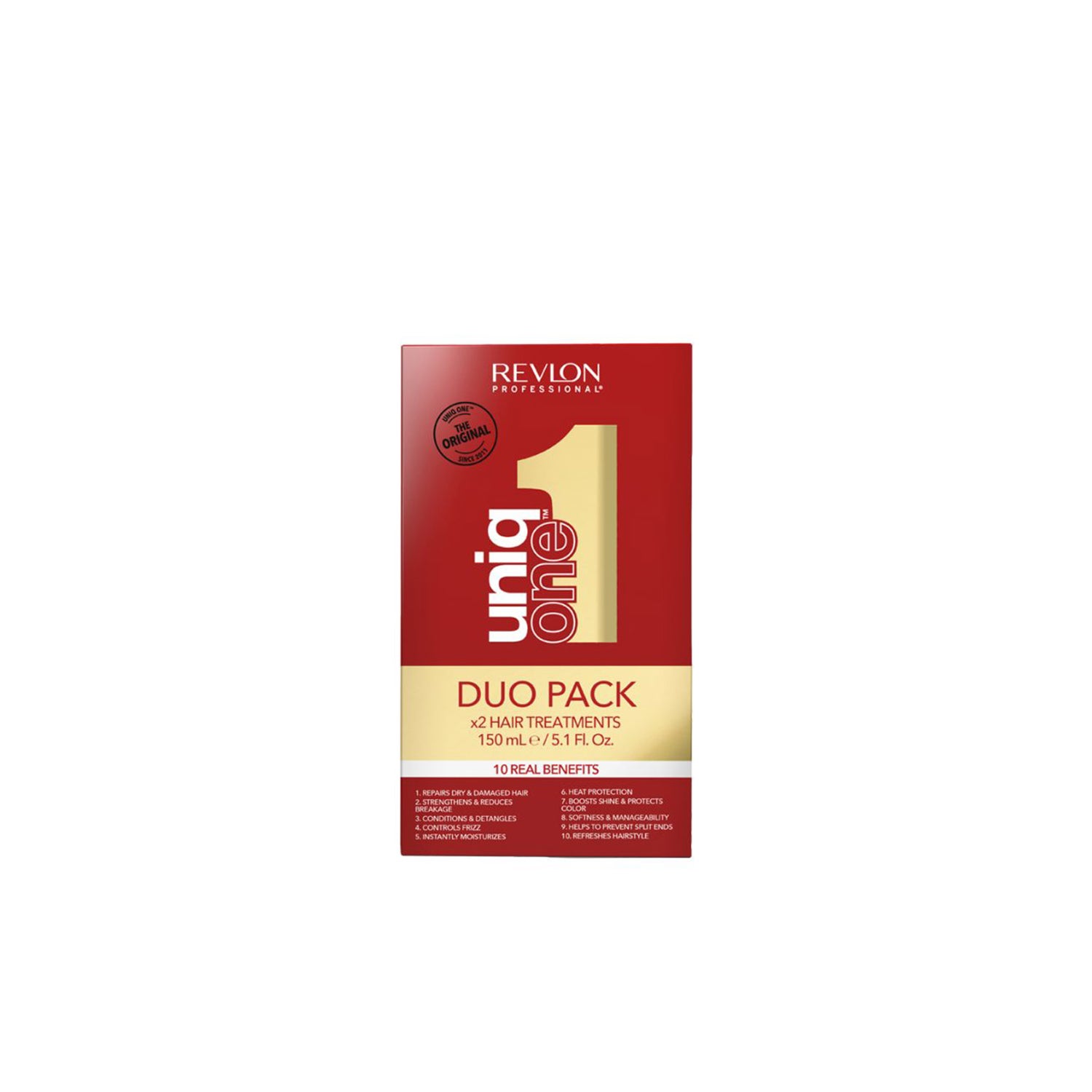 Revlon Uniq One Duo Pack All In One Hair Treatment 2x150ml is a leave-in hair treatment that transforms the health and beauty of hair with every application. Its professional formula is suitable for all hair types and offers a comprehensive solution for daily care, making it perfect for those who want to repair, protect, and beautify their hair with visible results from the first use.