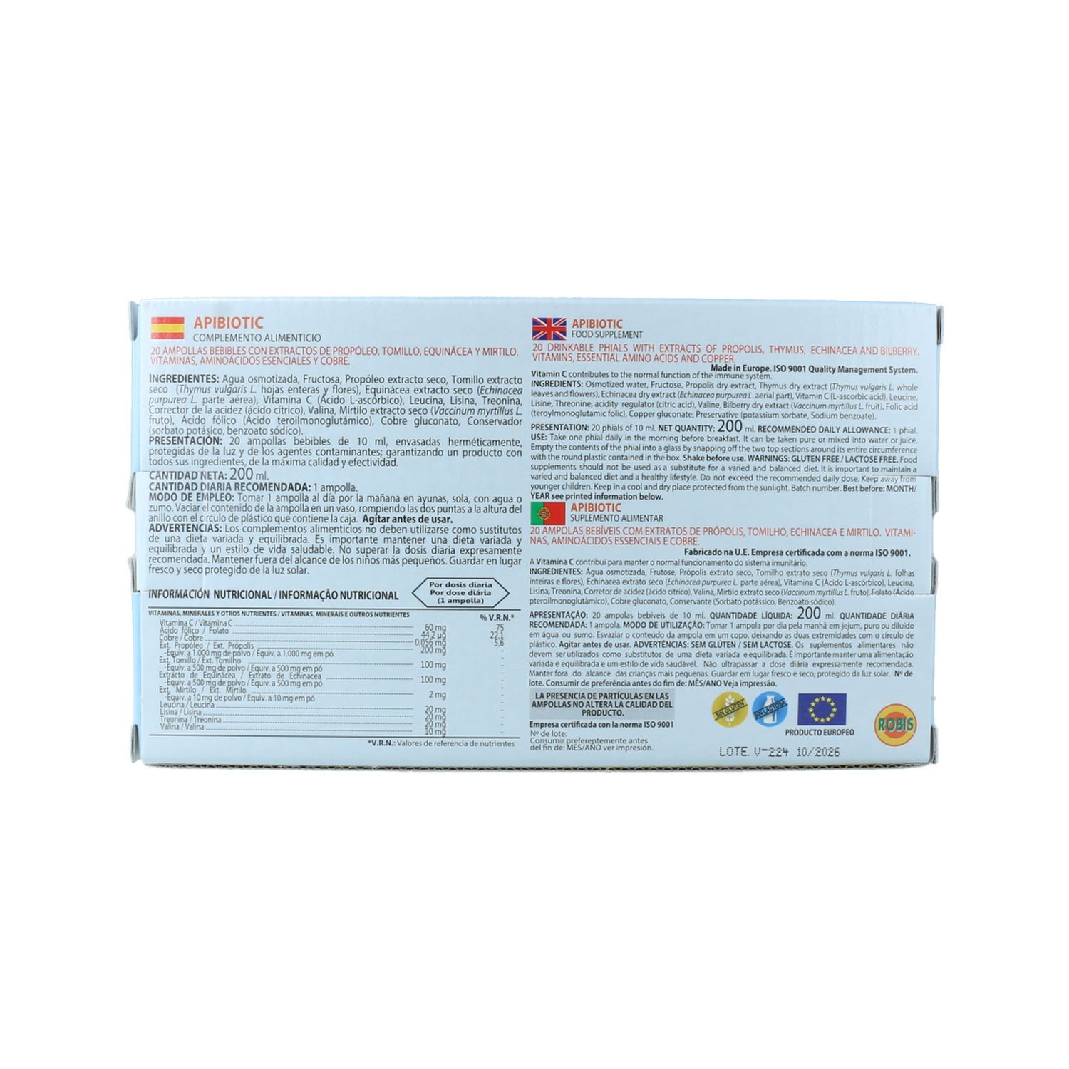 Dietary supplement that helps in case of colds, flu, bronchitis, asthma, emphysema, smoking, irritative cough or allergies. It is also good against gingivitis, canker sores, dental infections, colitis and parasitosis. Format of 20 ampoules.