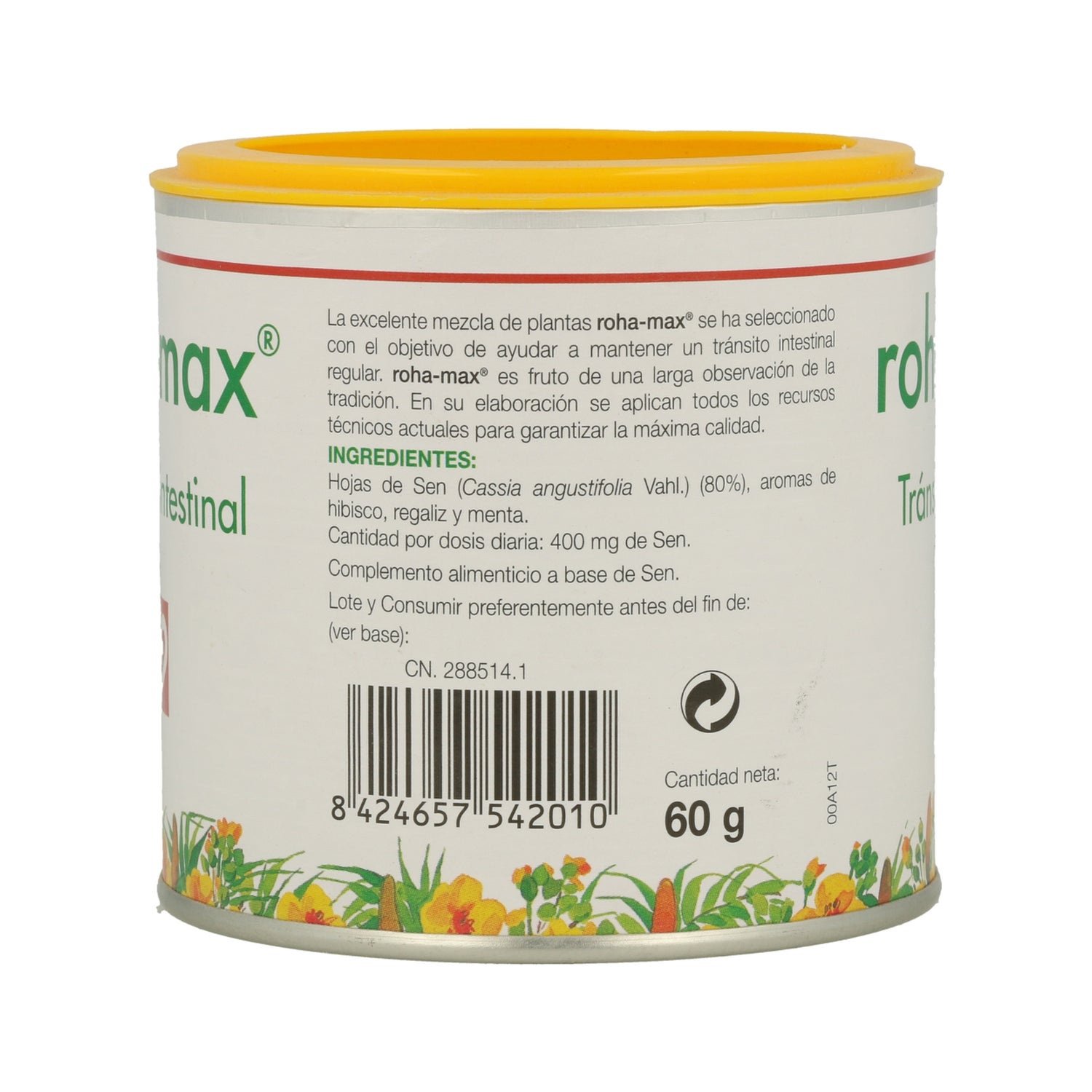 Roha-Max® Laxative 60g is a food supplement that offers an excellent blend of selected roha-max plants to help maintain a regular bowel movement.
