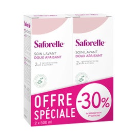 Saforelle Gentle Cleansing Care 2x500ml gently cleanses and soothes irritation and discomfort.Its slightly alkaline pH and burdock-enriched formula make it particularly suitable for daily use or in case of irritation, respecting the natural balance of the intimate area.Thanks to its softening agents, it also provides gentle body cleansing for irritated or sensitive skin.Suitable for pregnant women.Soap-free.Dermatologically tested.Pack of 2. Thanks to its softening agents, it also provides a gentle body cleansing for irritated or sensitive skin.Suitable for pregnant women.Soap-free.Dermatologically tested.Pack of 2.Duo format.