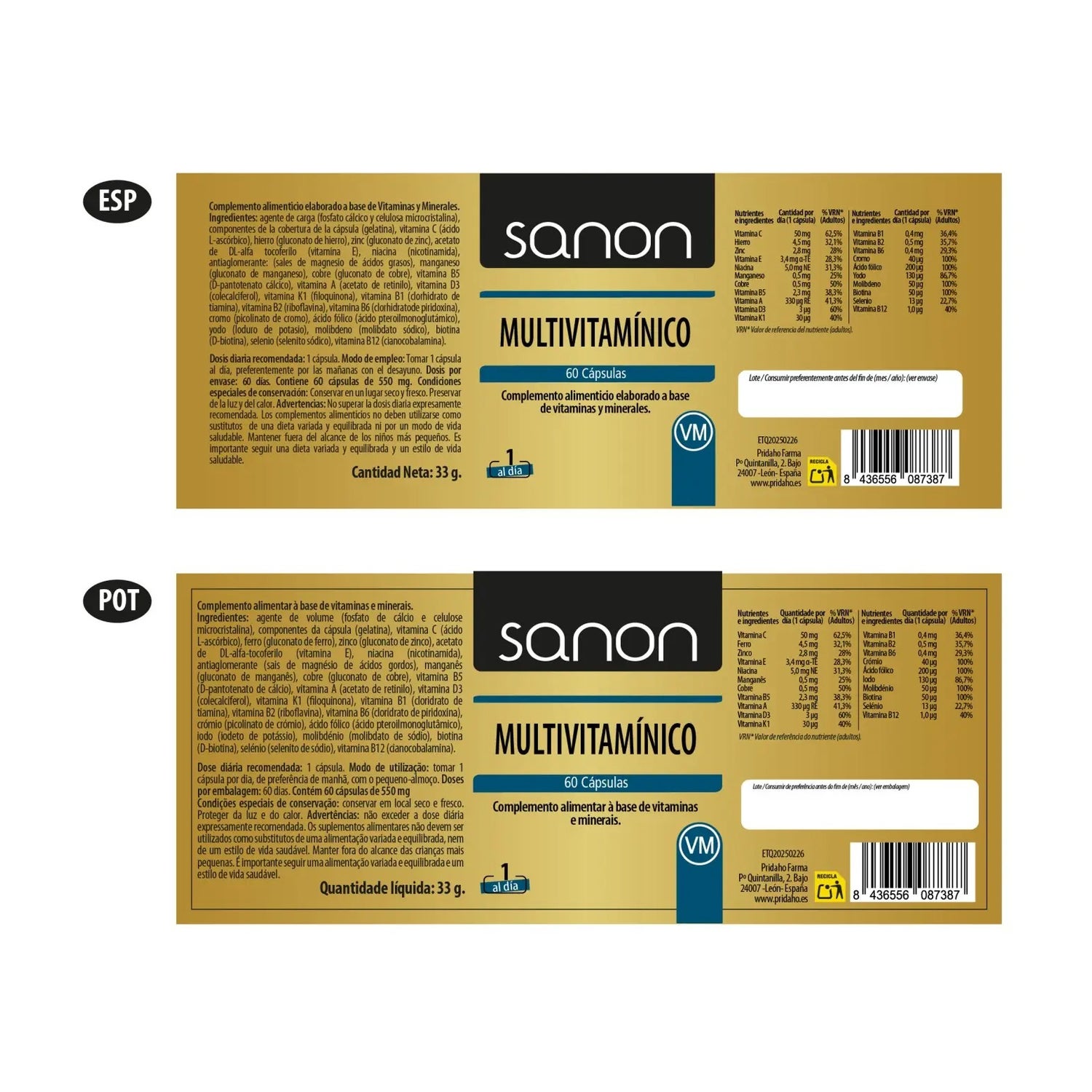 Sanon Multivitamínico con Ginkgo y Cúrcuma 60caps