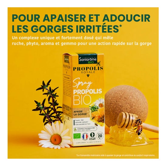 Santarome Propolis Spray Bio 20ml is an exclusive formula that combines carefully selected organic ingredients: