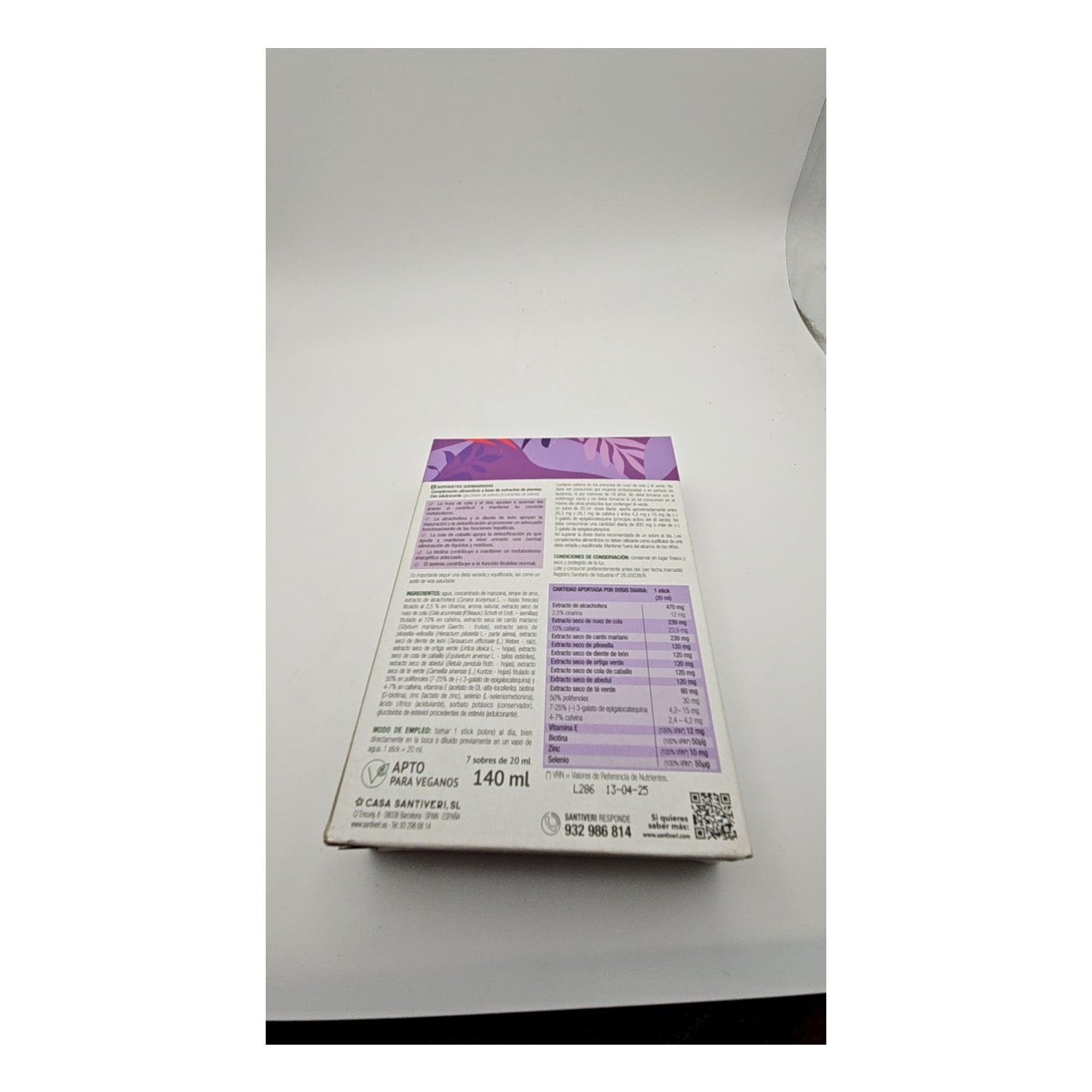 Santiveri SuperDetox Quemagrasas 7 Sticks is a food supplement in sticks format based on plant extracts, vitamins and minerals that help to exert a detox effect on the body. It also contributes to improve lipid metabolism and to support the purification of liquids. Contains 7 sticks.