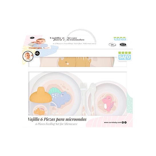 The Saro Baby Happy Dinos Microwave Cutlery Kit is a tableware set designed for babies that aims to make every meal a fun and colorful experience. This set is created for the little ones to enjoy while expending their energy to the fullest.