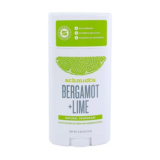 Schmidt's Natural Deodorant Bergamot + Lemon 75g is a deodorant stick with bergamot and lemon to neutralize perspiration odors. 100% natural formula based on plants and minerals, its citrus fragrance helps provide freshness for 24 hours. Baking soda neutralizes acidic odors caused by perspiration. Coconut oil eliminates odor-causing bacteria and helps moisturize the skin. Vitamin E protects the skin thanks to its antioxidant properties. Jojoba oil ensures a smooth application. Finally, Maranta root (or arrow root) helps absorb moisture and nourish the skin.Vegan. Dermatologically tested.