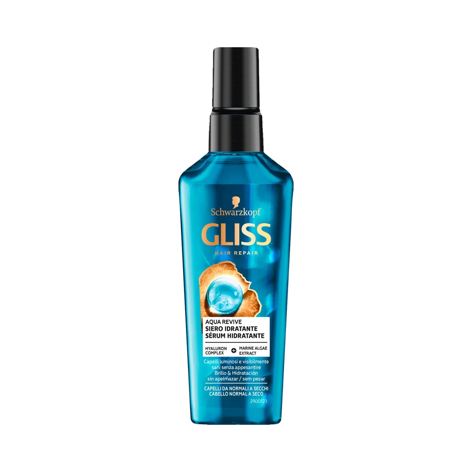 Schwarzkopf Gliss Aqua Revive Moisturizing Serum of 75ml is a treatment specifically designed for dry hair. This serum, which incorporates the innovative HaptIQ System, creates micro-links that strengthen the hair structure, providing hydration that can last up to 48 hours with a single application compared to untreated hair.