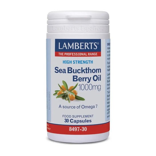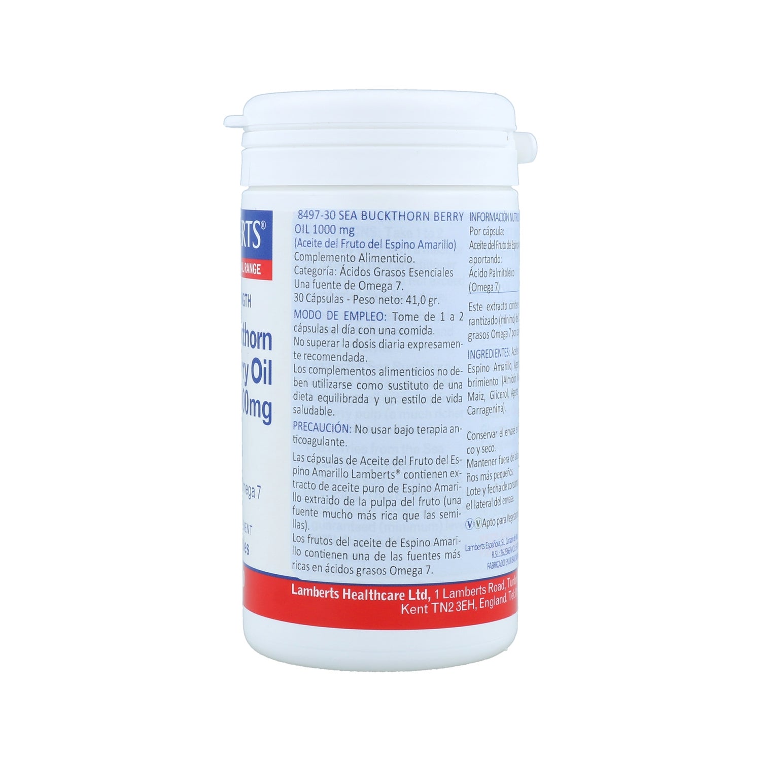 Lamberts Sea Buckthorn Fruit Oil 1000mg 30 Caps is a food supplement made from sea buckthorn berry oil, with a concentration of 1,000mg per capsule. This oil is extracted directly from the pulp of the berry, being a more abundant source than that obtained from the seeds, and is made without the use of solvents to ensure maximum quality.