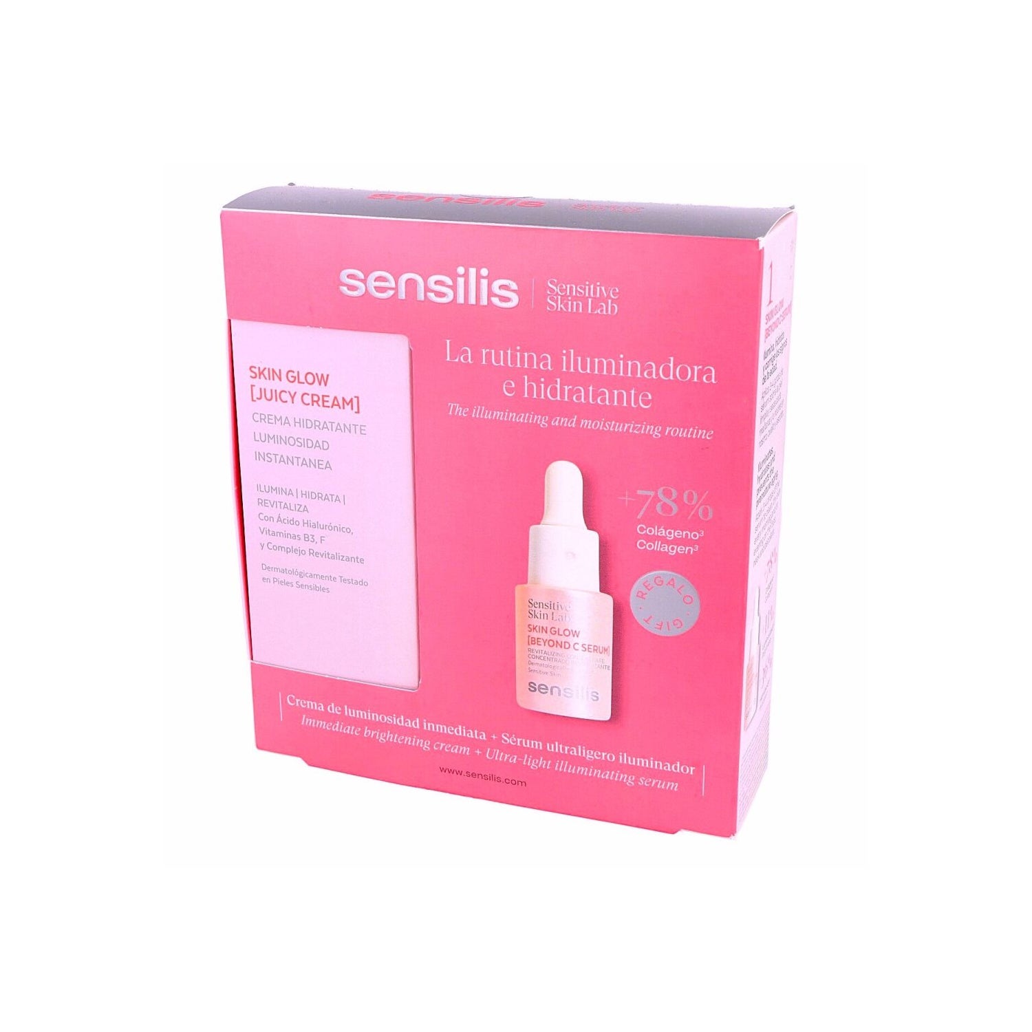 SENSILIS SKIN GLOW [JUICY CREAM] 50ML is a moisturizing cream for immediate luminosity that will reactivate the light in your skin. It has a melting texture and quick absorption that deeply hydrates immediately, restores the light in your skin, and improves barrier function thanks to Vitamin F. It contains 2 soft-focus pigments that enhance immediate luminosity and camouflage skin imperfections. It contains 5% Vitamin F, 3% Niacinamide that improves skin tone, 0.5% Provitamin B5 that stimulates the synthesis of collagen, elastin, and keratin, Hyaluronic Acid, 3 minerals (Zinc, Copper, and Magnesium), and 3 amino acids.