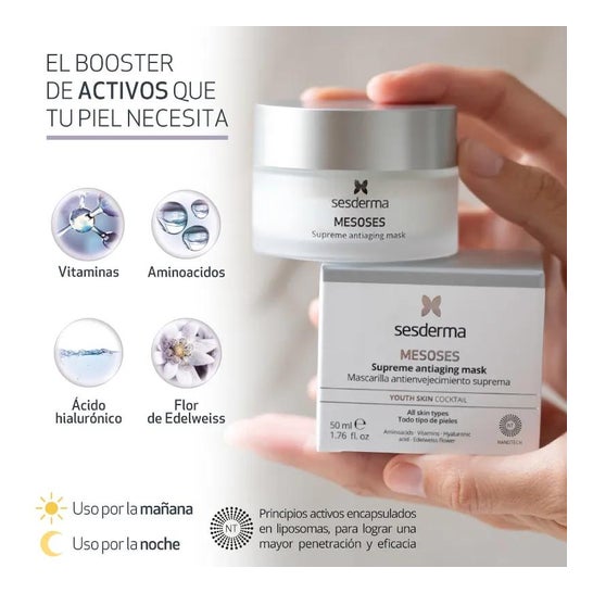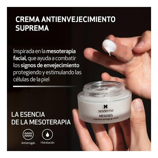 - Apply Mesoses supreme anti-aging cream every day morning and/or evening with a gentle massage until completely absorbed and spread evenly. The right amount is the size of a hazelnut.
