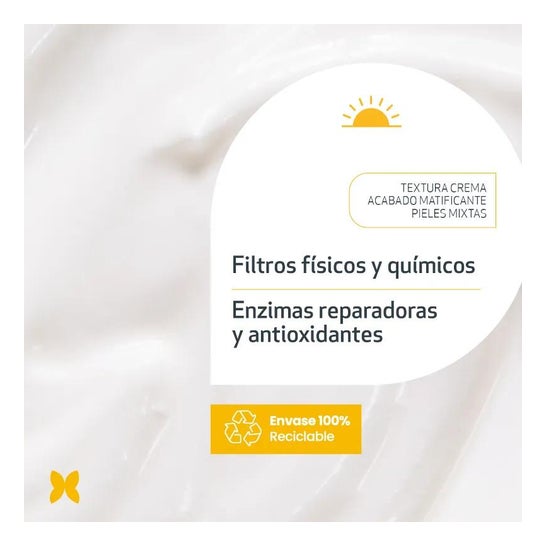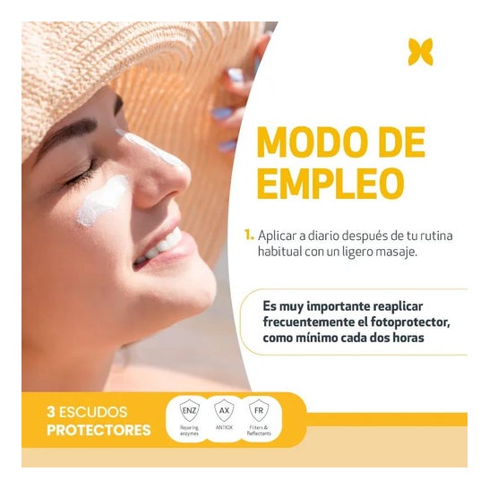 Its formula with physical and chemical filters SPF50+ prevents burns and erythema and repairs up to 50% of accumulated photodamage. Additionally, it has a creamy texture with a dry touch.