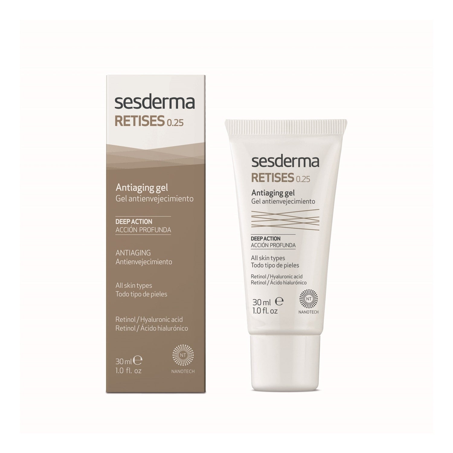 Retises Nano 0,25% is a very effective gel for preventing skin aging and photo-aging, rich in retinol acts on collagen in three different ways: