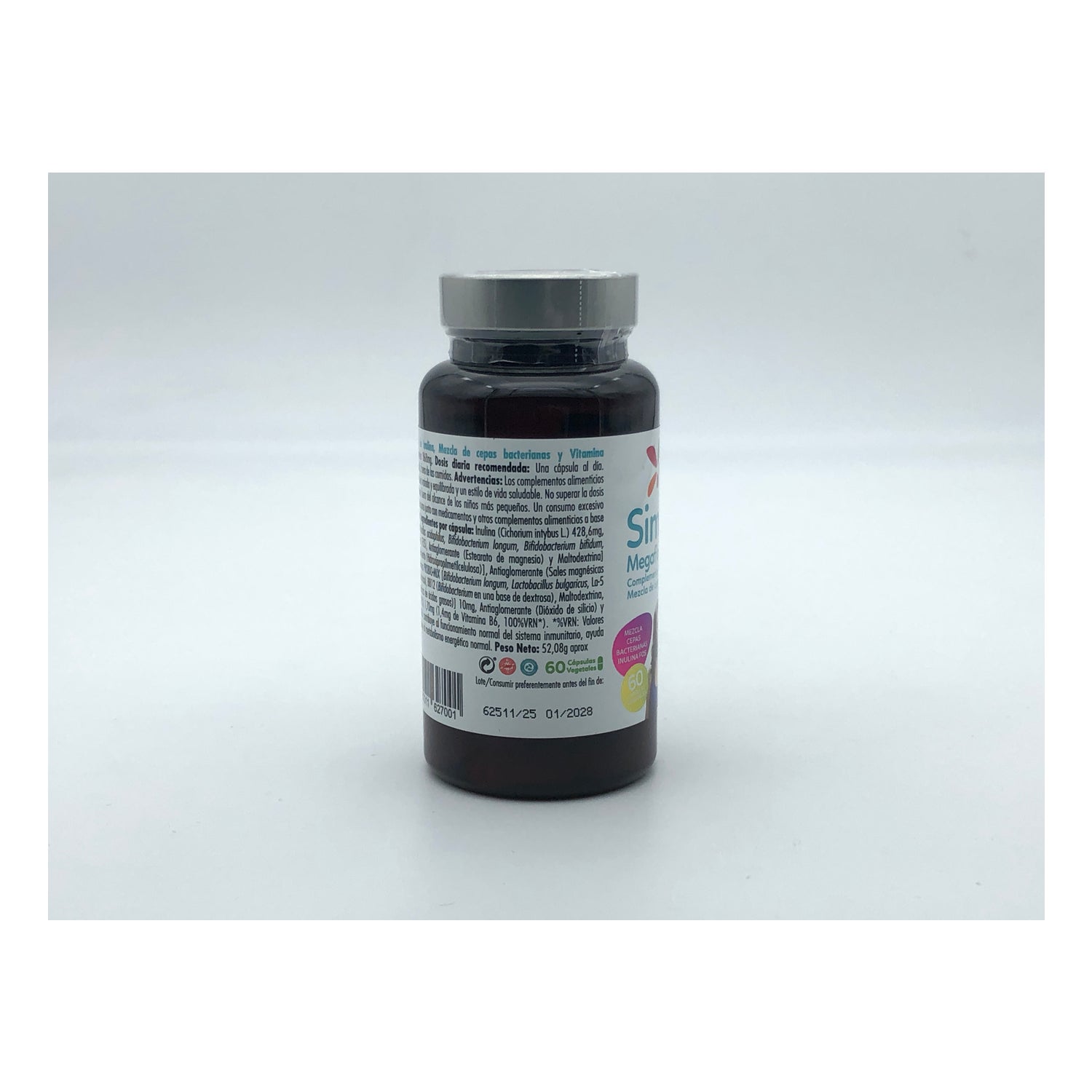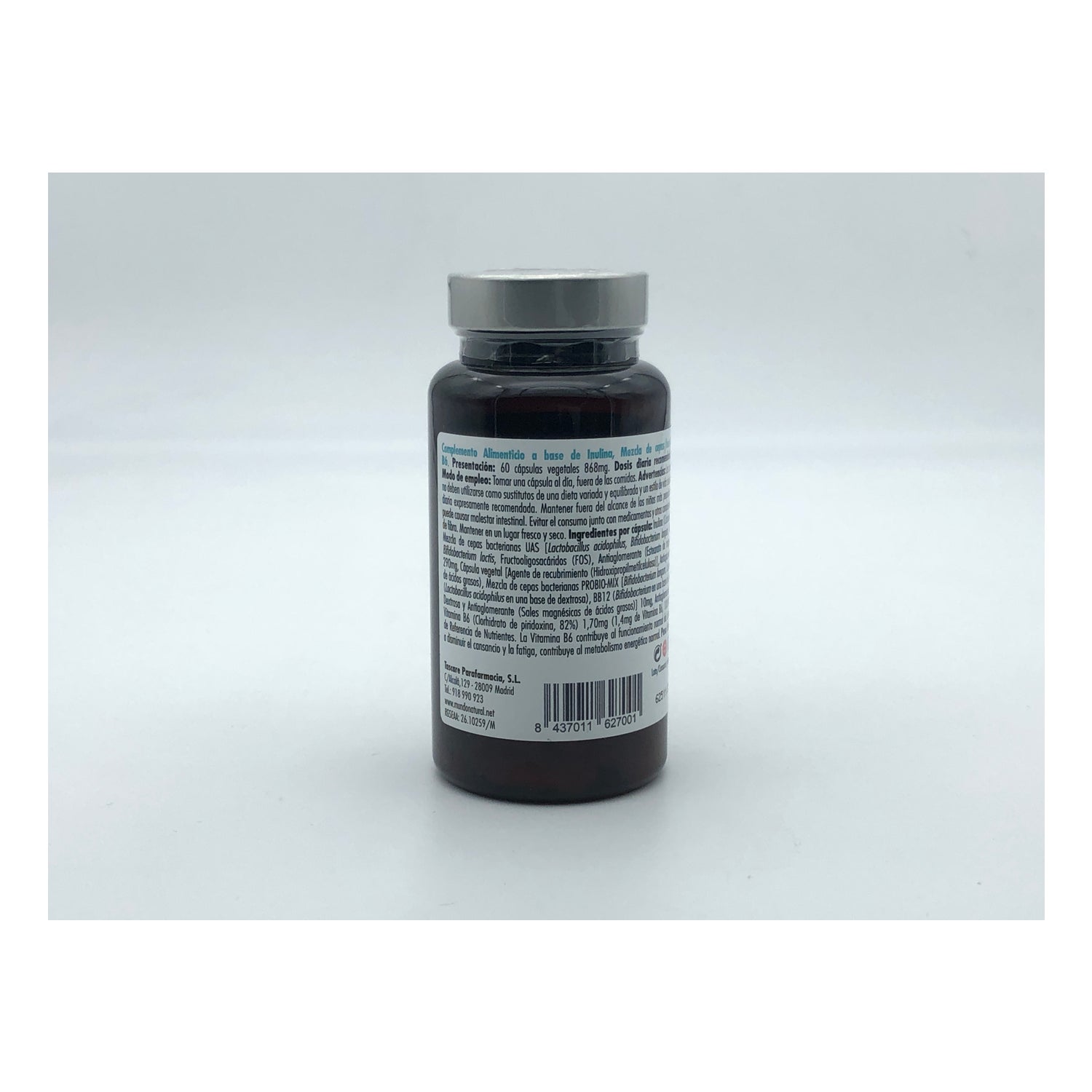 Symbiotic supplement (pre and probiotic) that helps balance intestinal flora by eliminating gas and reducing volume in the abdominal area. Made from: