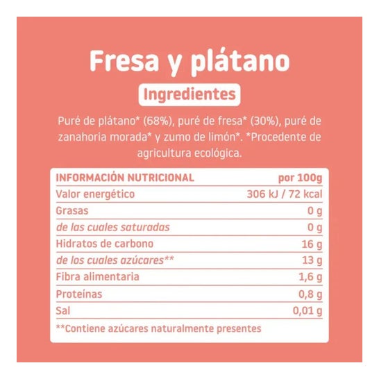 Strawberry and banana pouch made with 100% organic ingredients and with no added sugar