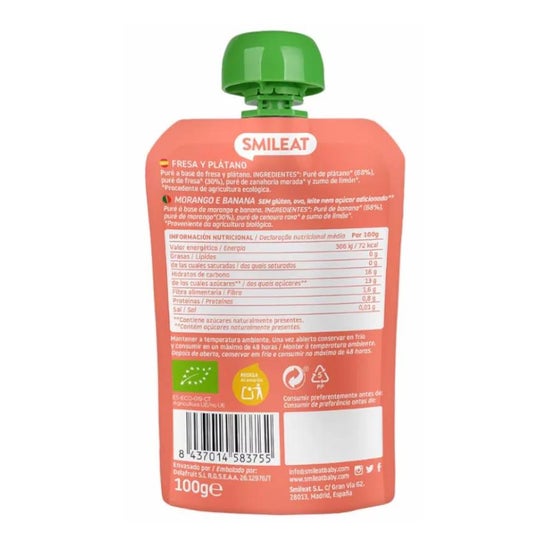 Smileat Pouch Strawberry and Banana Pouch is an organic strawberry and banana pouch made with 100% organic ingredients and contains no added sugars.