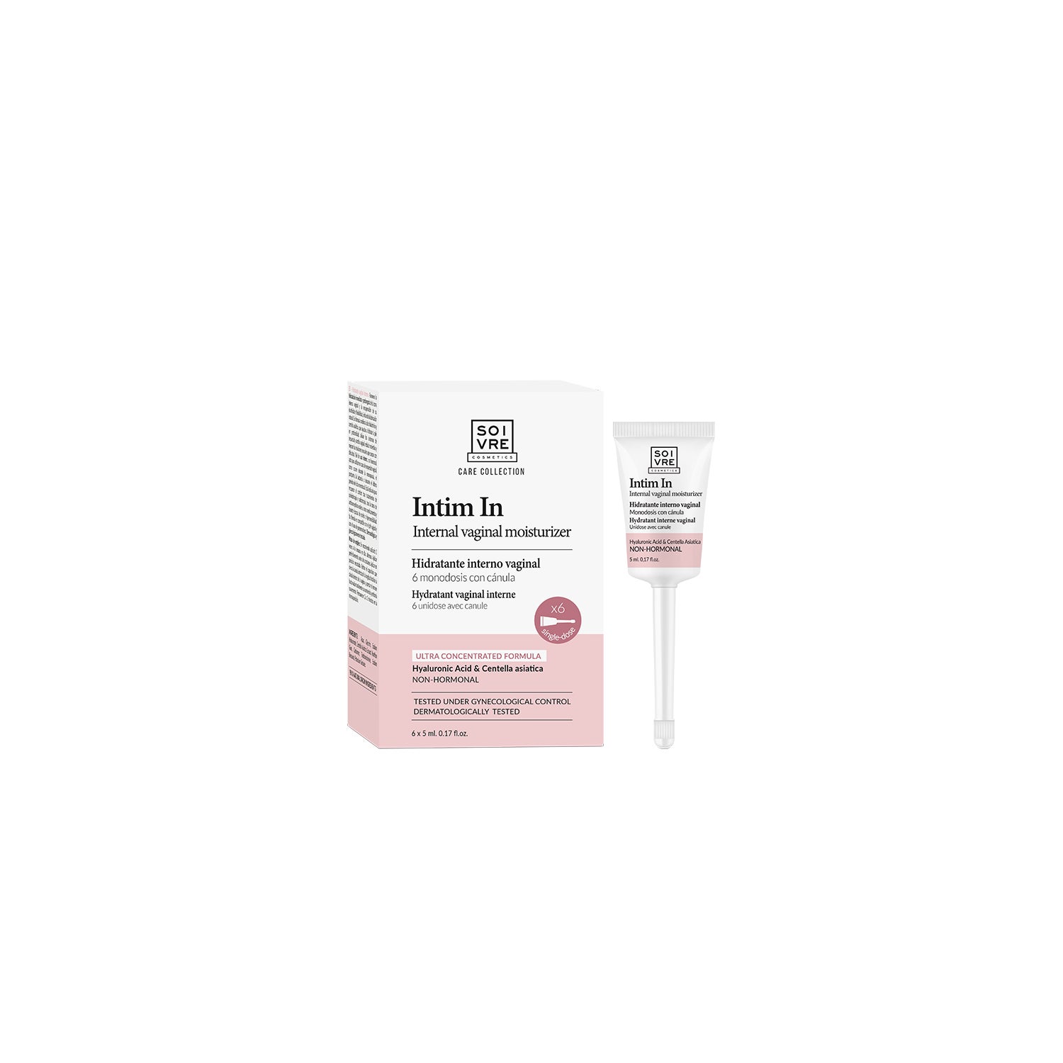 Soivre Cosmetics Intim In Internal Vaginal Moisturizing Gel 6x5 ml is an internal moisturizing gel in single doses, presented in 6 cannulas of 5 ml. It is indicated for vaginal dryness and provides deep and immediate hydration in the intimate area.