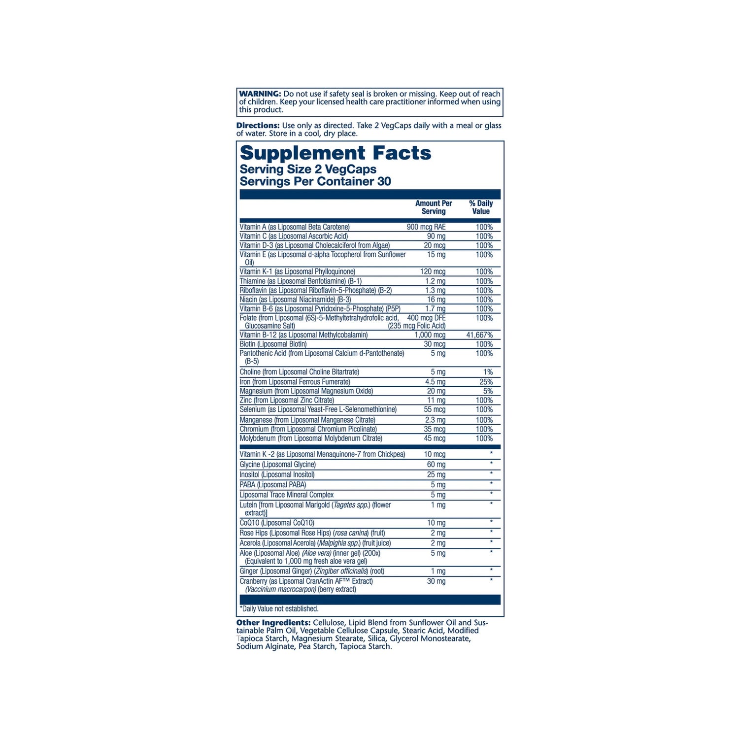 Solaray Liposomal Multivitamin Woman +50 60caps is a food supplement that helps strengthen the nervous system. It is formulated with cranberry extract, vitamin C and other nutrients that help prolong energy and vitality. It also helps to strengthen the immune system and to promote the synthesis of natural collagen. Contains 60 capsules.