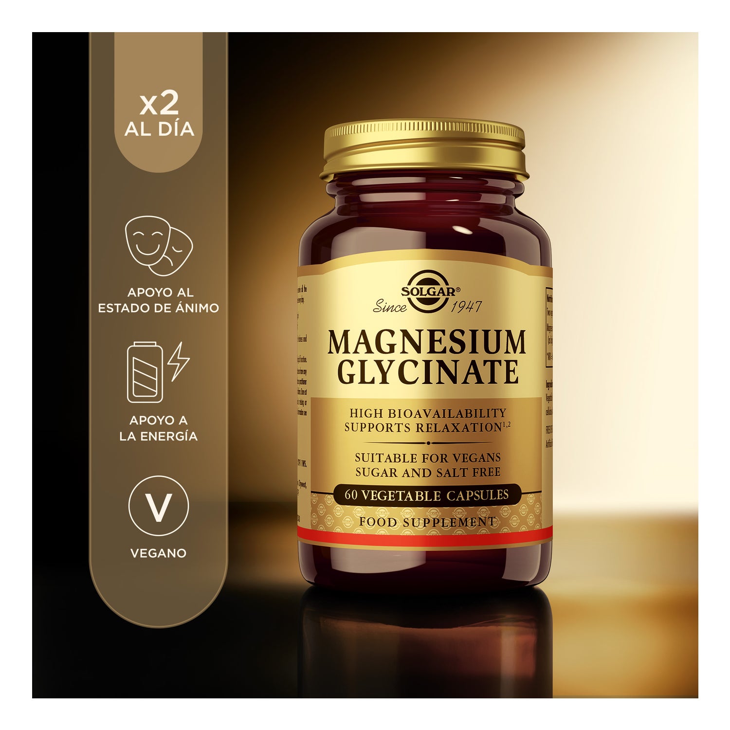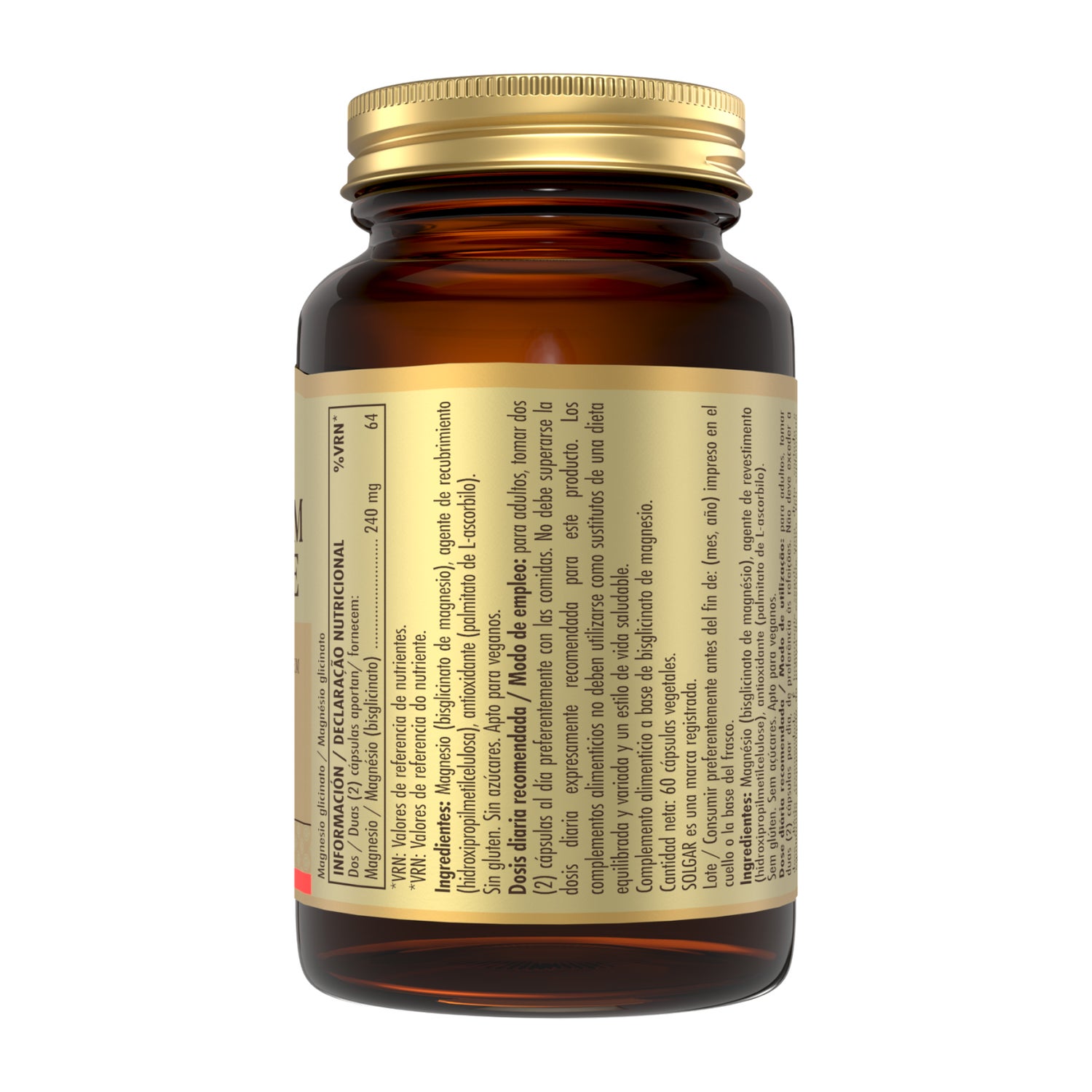 100% chelated magnesium in the form of bisglycinate, the most well-tolerated magnesium salt by the body that helps our mind and nervous system function properly. Solgar® Magnesium Glycinate is a high-quality supplement formulated with magnesium exclusively in the form of bisglycinate, an amino-chelated form of the mineral that stands out for its excellent absorption and high gastrointestinal tolerance, which reduces the risk of experiencing gastrointestinal discomfort commonly associated with other magnesium salts.