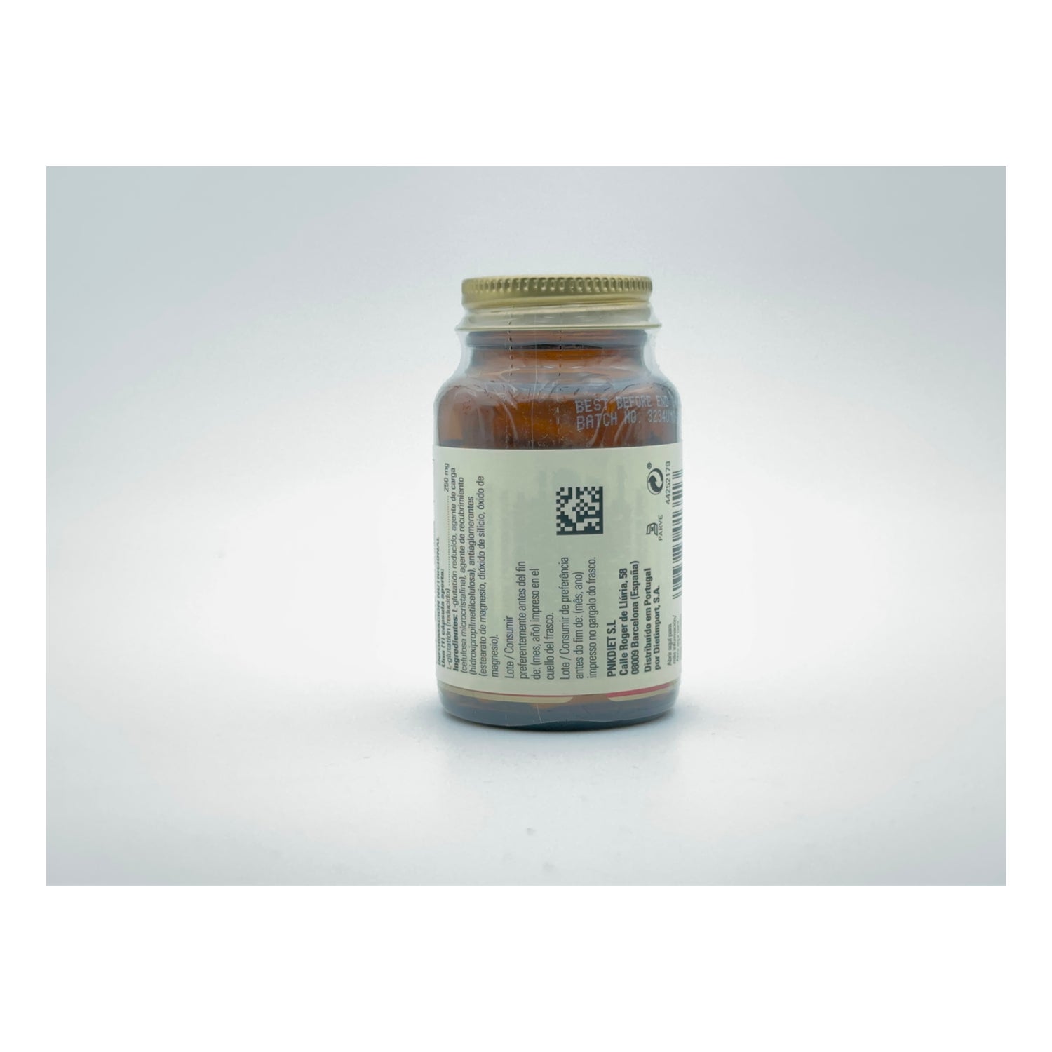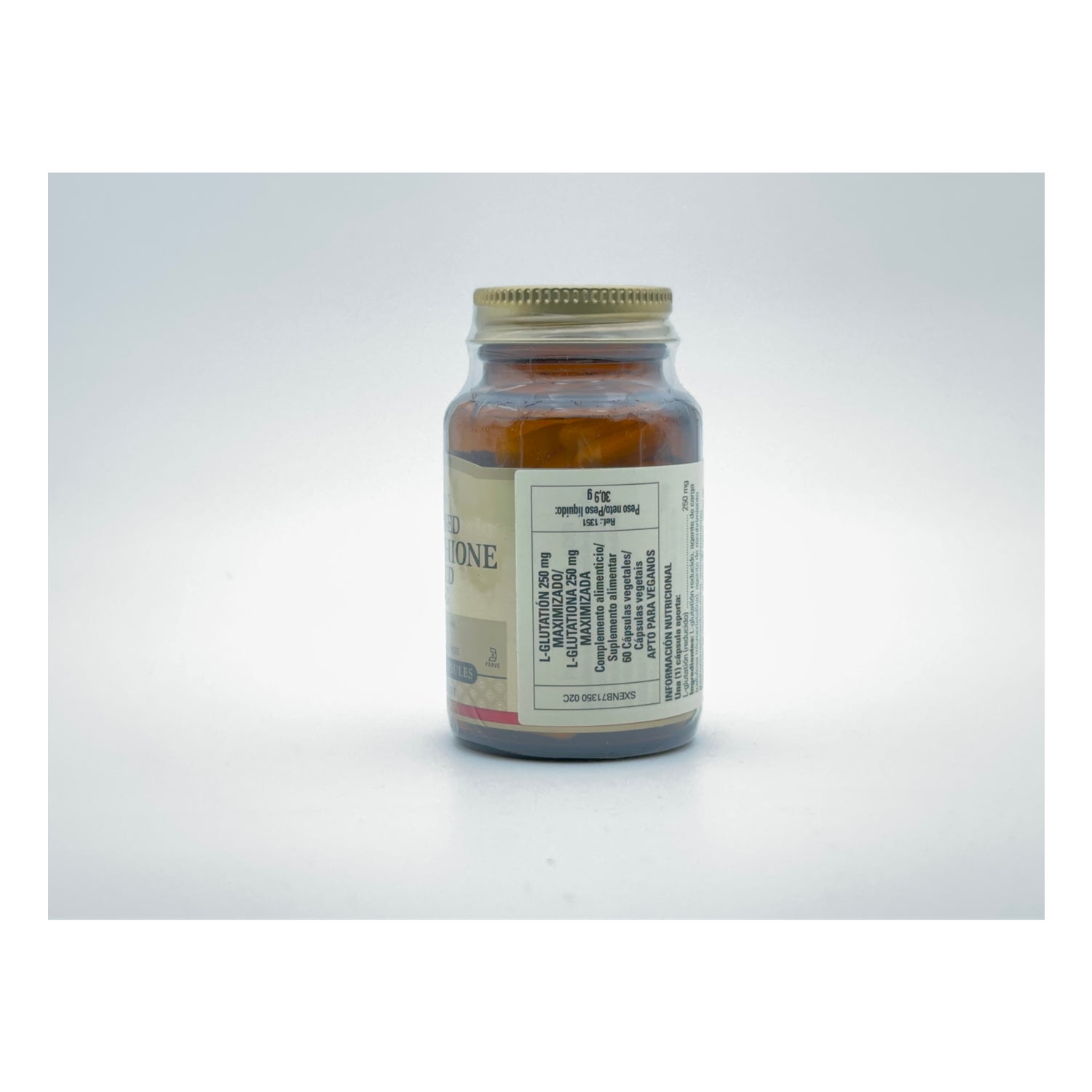 L-Glutathione (reduced). Bulking agent: microcrystalline cellulose; anti-caking agents: vegetable magnesium stearate, silicon dioxide; vegetable-based capsule: hydroxypropyl methylcellulose.