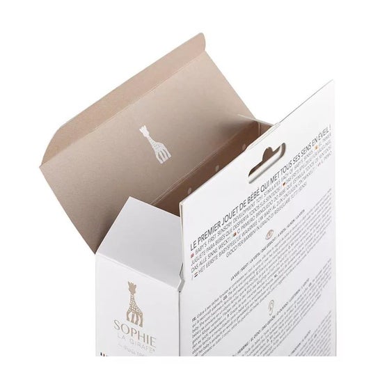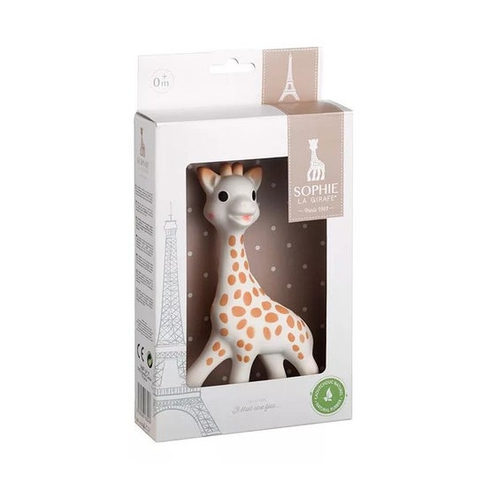 Toy in the shape of a giraffe made of 100% natural rubber and non-toxic paint suitable for contact with food and the mouth of babies from 0 months. Sophie the giraffe helps develop babies' senses thanks to the bright colours, the whistle, the soft and light touch and the peculiar smell of natural rubber. In addition, the ears, horns and feet help relieve teething pains by acting as a teether.